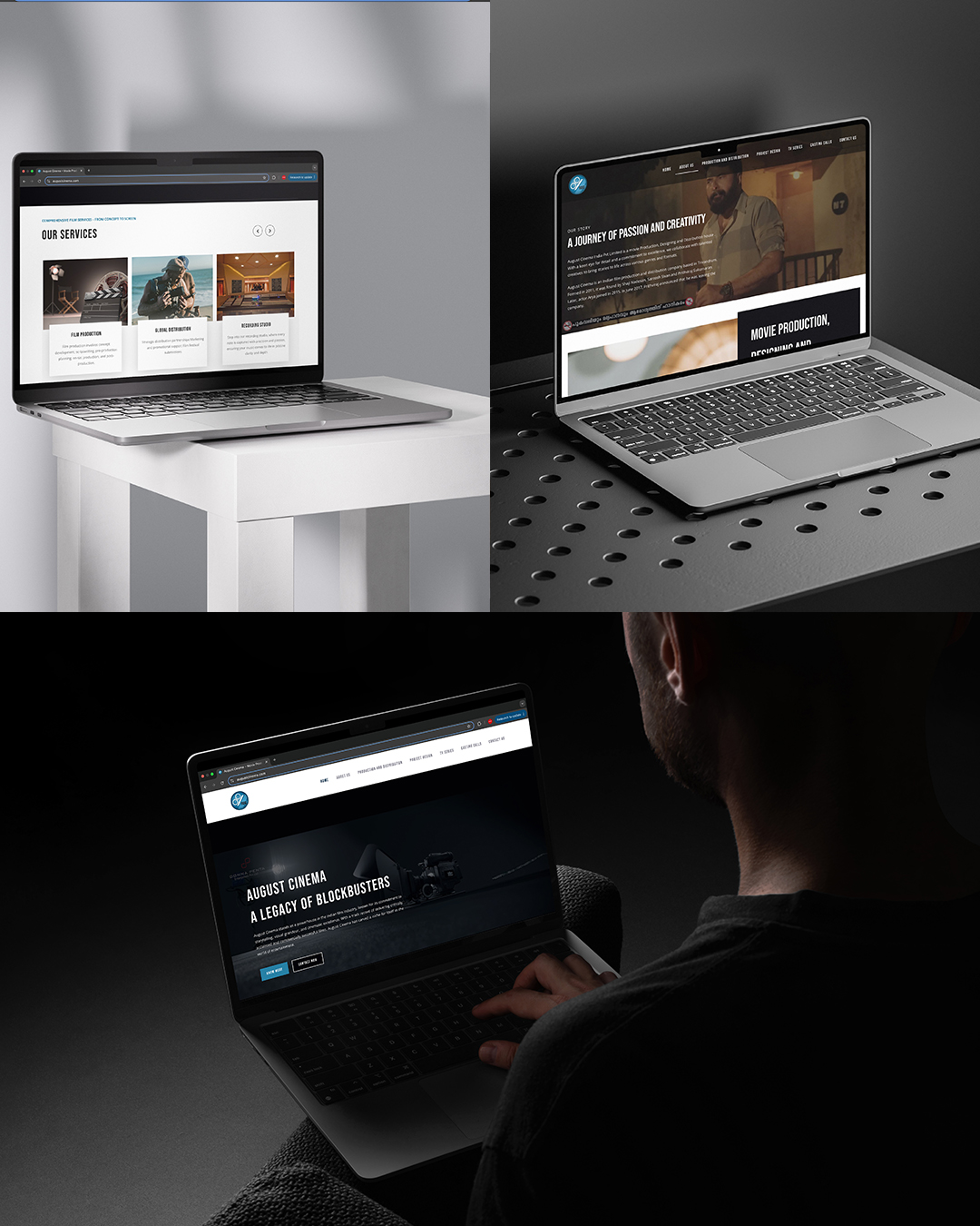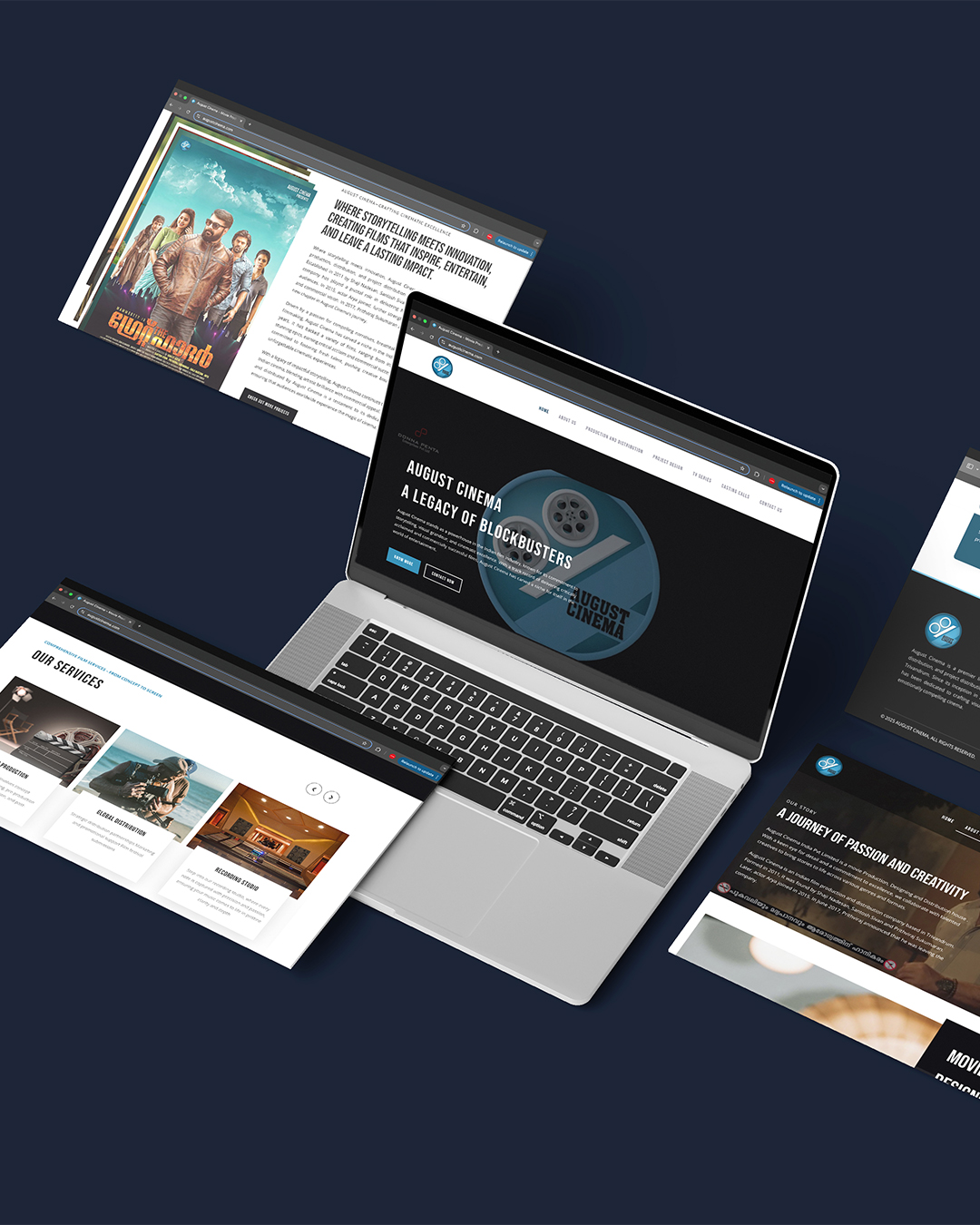 We crafted a sleek and immersive website for August Cinema, designed to reflect the studio’s cinematic excellence and creative depth. The site captures the essence of their storytelling vision through a clean layout, rich visuals, and smooth transitions, offering visitors an experience as captivating as their films. With a focus on performance and responsiveness, the website showcases their portfolio, highlights ongoing and upcoming projects, and communicates their brand identity with clarity. It serves as both a professional showcase and a creative hub for film enthusiasts and collaborators alike.